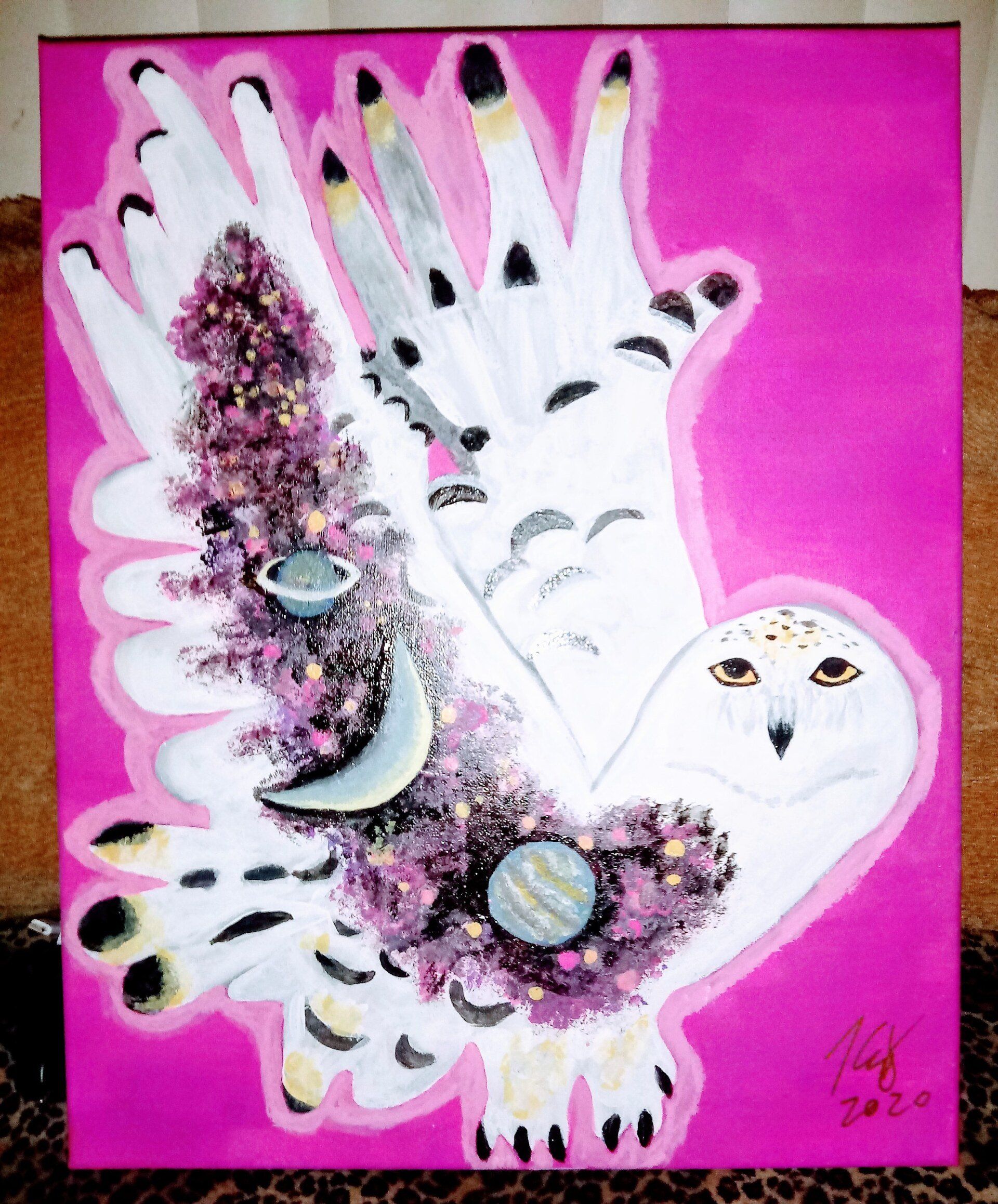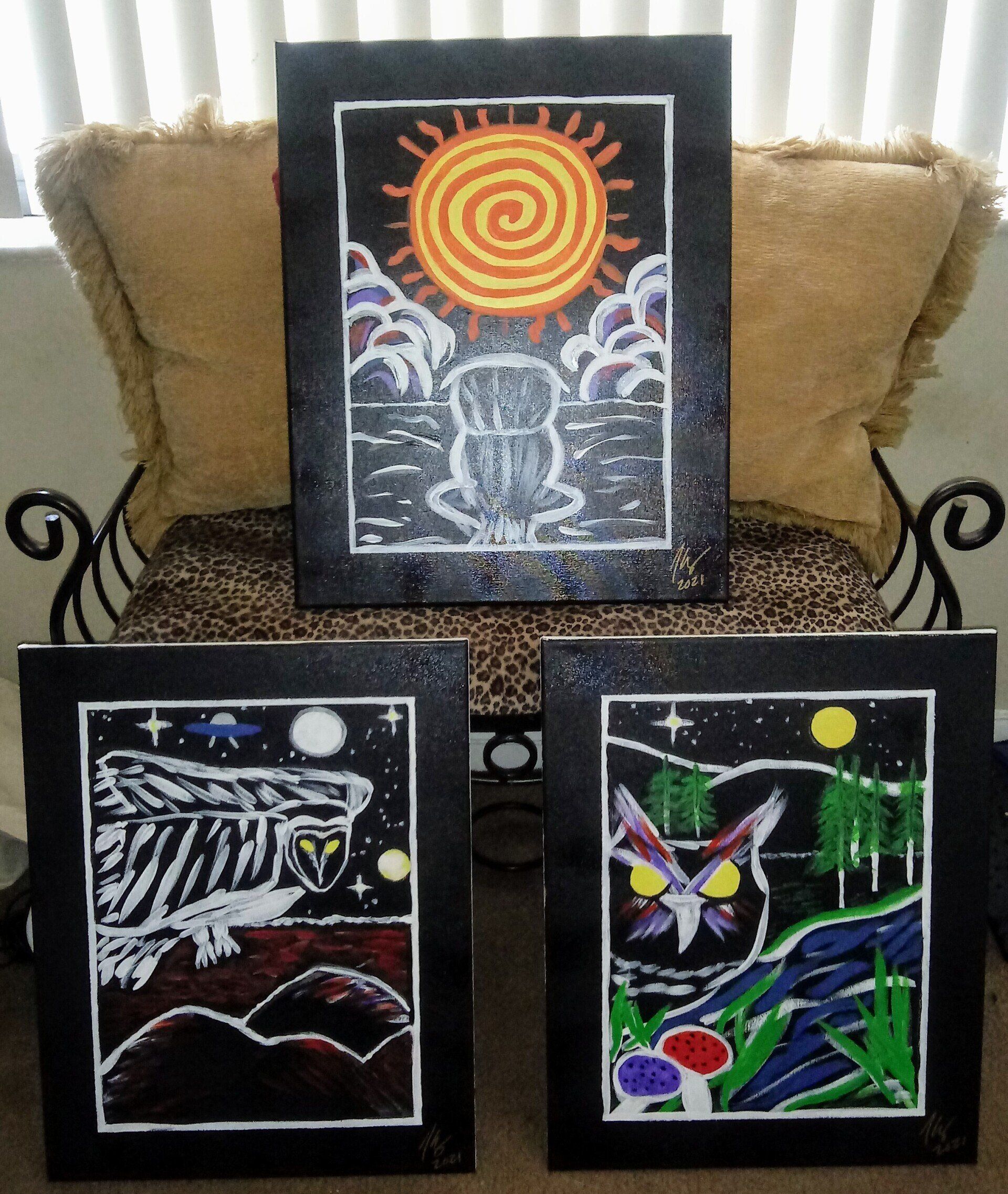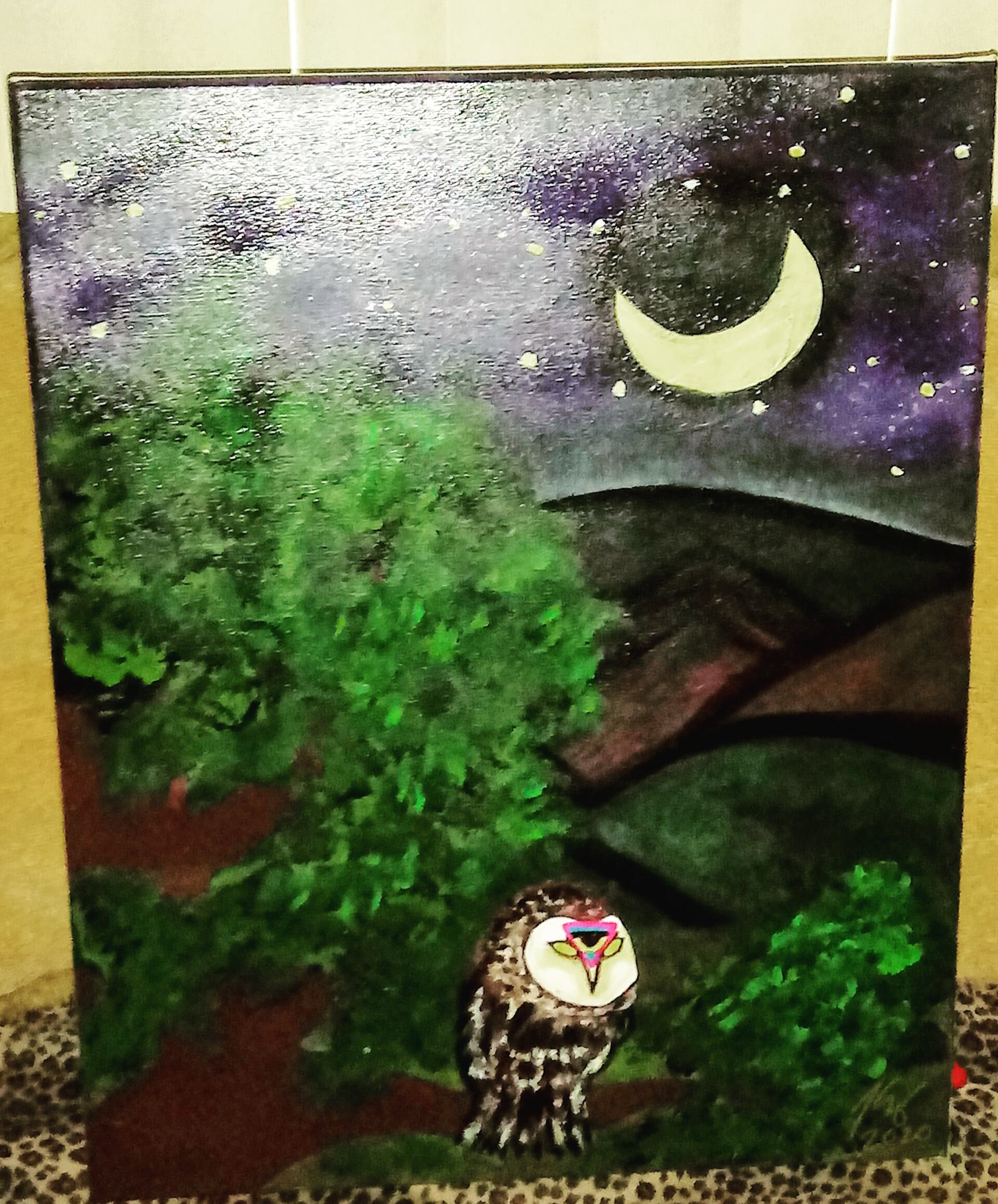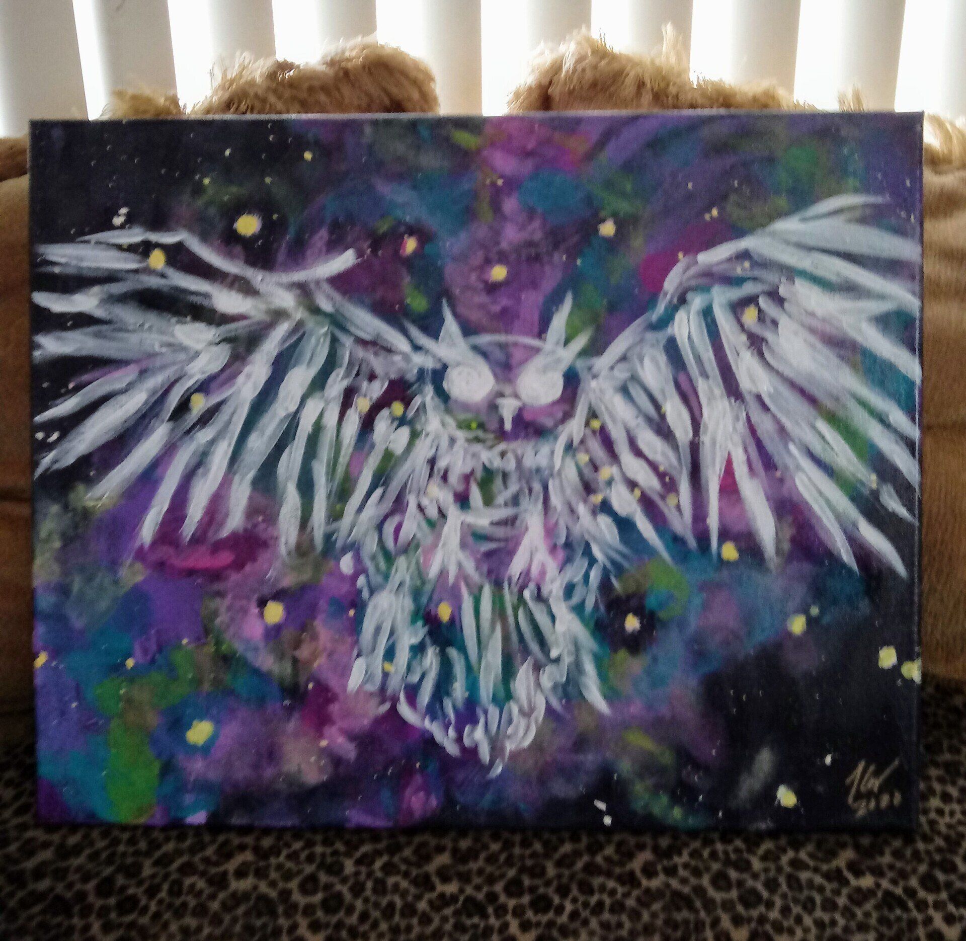 After the initial spark in 2012 of a spiritual awakening, that began the self-discovery journey to my current creations - I began to come across owls in every way possible. Including one that would visit my Mom and sit for a while on the corner of her dining room table (true story!). Also, receiving unique owl themed jewelry from my Sister. So began me asking in prayer, what this all meant. So I joined a small group of women, for meditation, yoga and some painting afterwards. What came out was an owl...a Great Horned Owl; and so began in 2018, the creative path that is today, Aurora Owl Art.